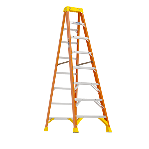 - Made from industrial-grade fiberglass side rails and aluminum rungs.